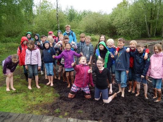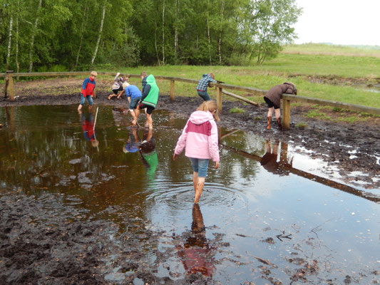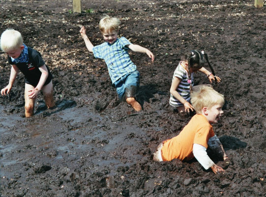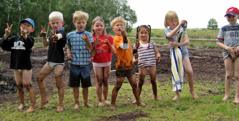 Die Matschkuhle ist das absolute Highlight bei Führungen und Exkursionen von Kindergruppen und Schülerklassen. Der Spaß ist fast grenzenlos, wie man 2010 an der Gruppe vom Kindergarten Purzelbaum aus Eickhorst sehen kann.