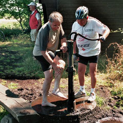 Auch wenn die Füße dieses Mal nicht ganz sauber wurden, der vierjährige Junge kommt bestimmt bald wieder. Mit vereinten Kräften - einer pumpt, der andere schrubbt - wurde nach der Moorpackung versucht, die porentiefe Wirkung des Moores zu bekämpfen.